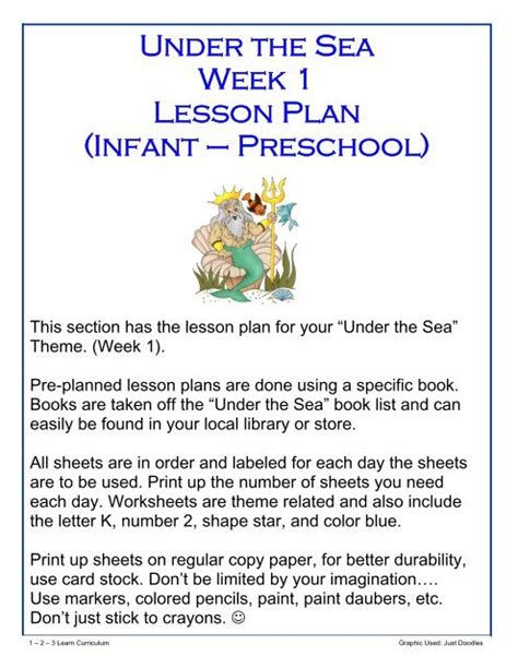 Read Under The Sea Week 1 Lesson Plan Infant Preschool Doc